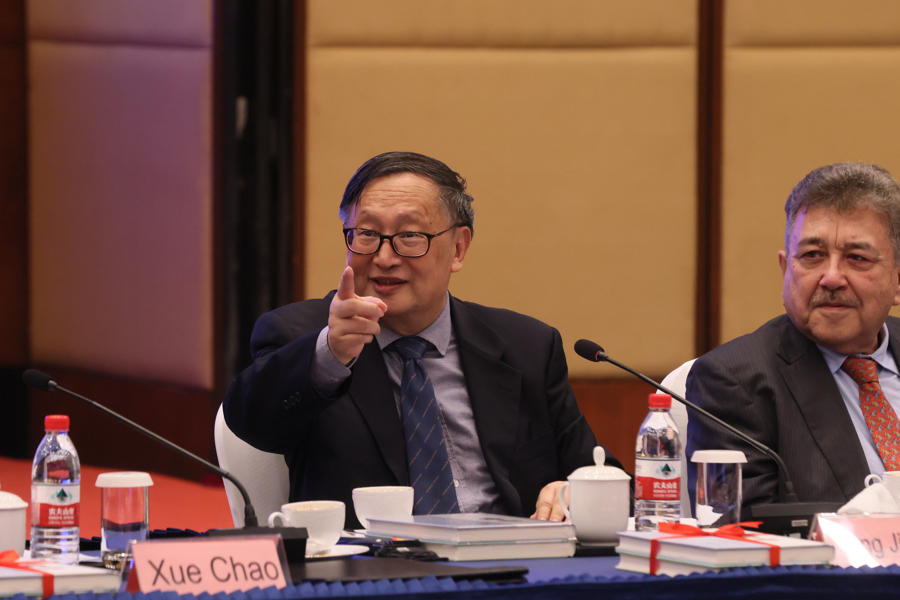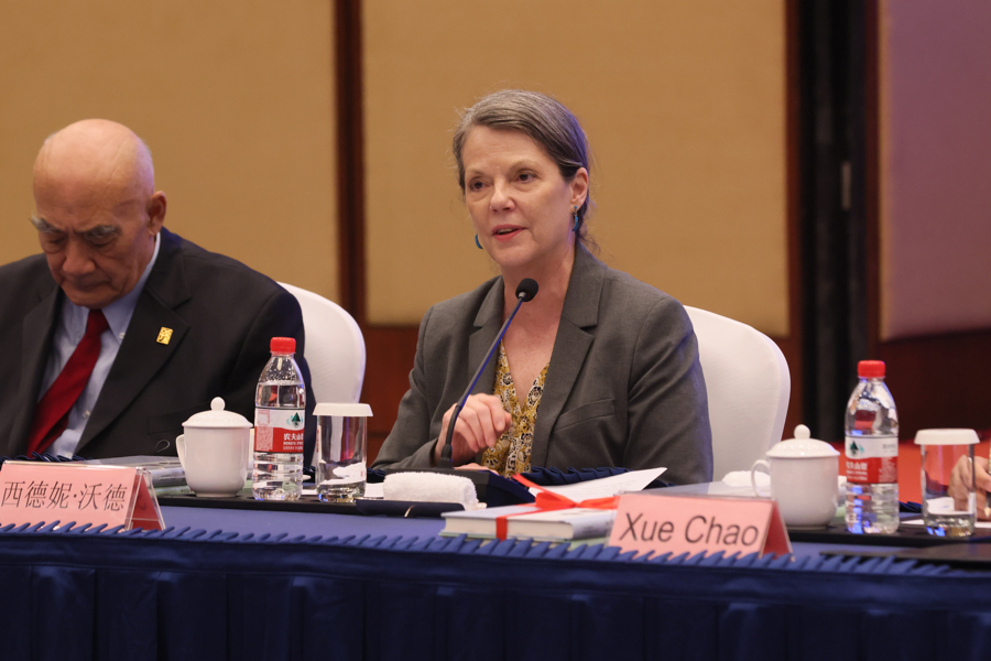 图为:上海国际问题研究院前院长、学术咨询委员会主任杨洁勉指出,中美两国人民通过“中国皇后号”开启直接贸易先河,在反法西斯战争中淬炼情谊,并在过去数十载合作中深化友谊。